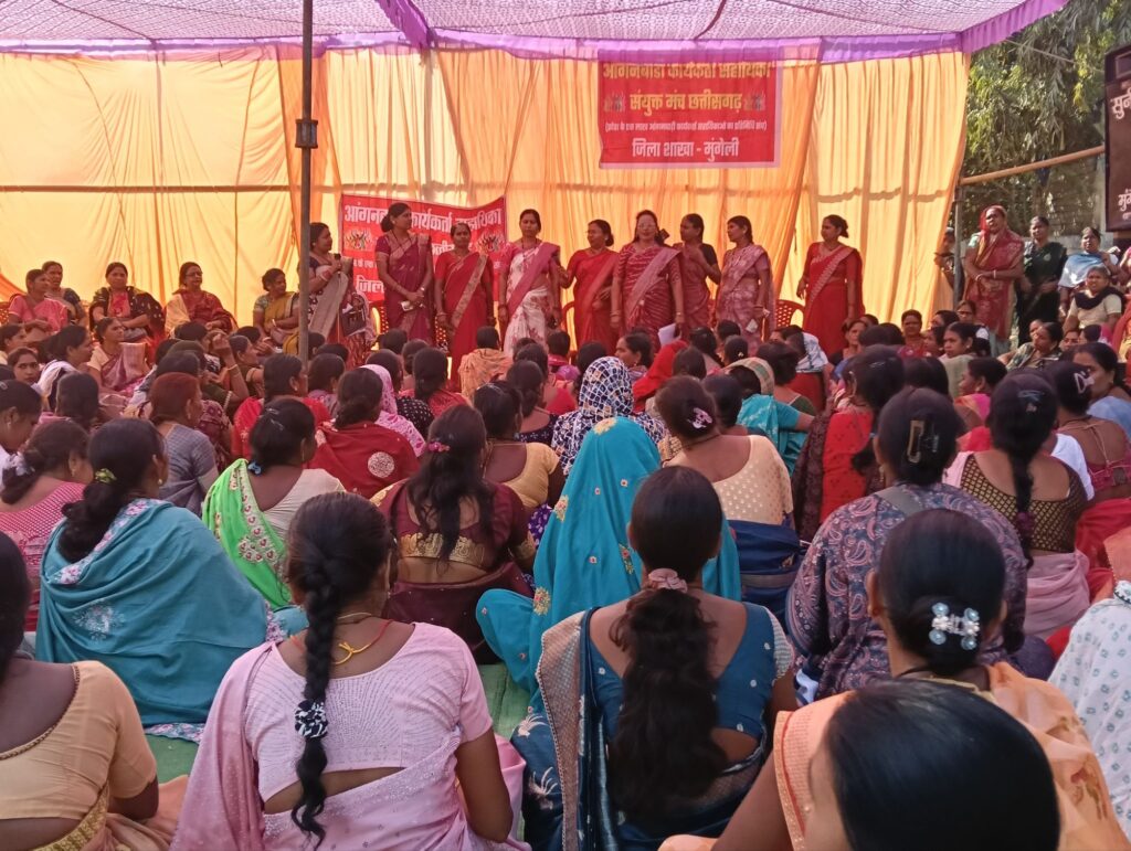 03 सूत्रीय मांगों को लेकर आंगनबाड़ी कार्यकर्ताओं का दो दिवसीय धरना